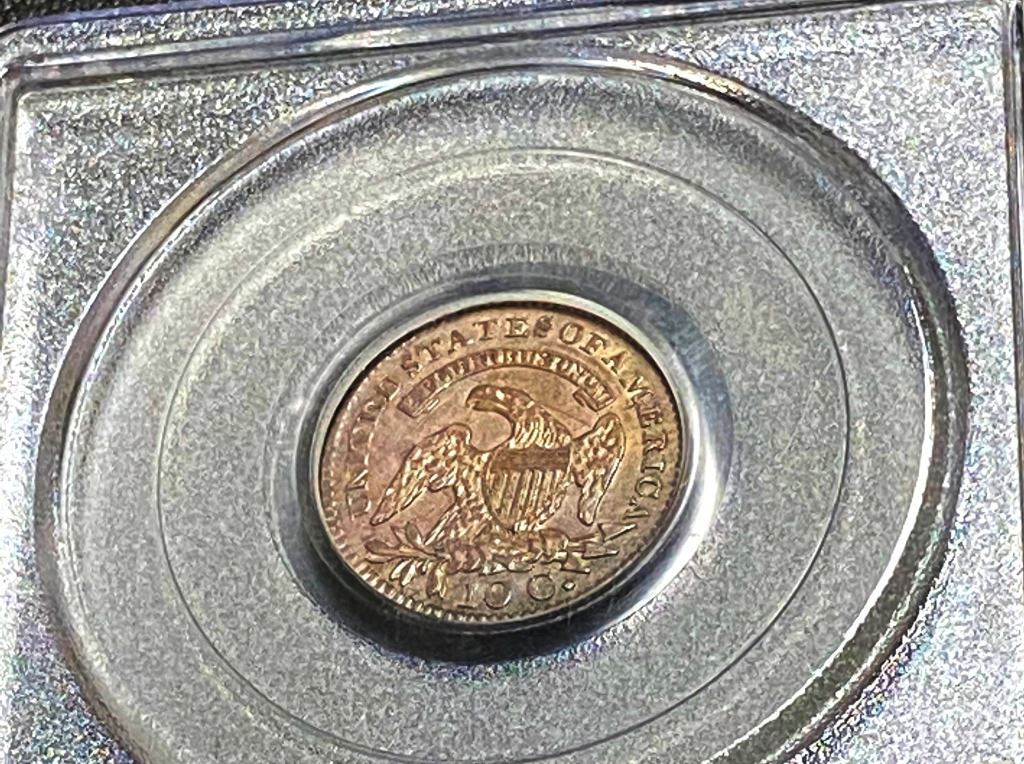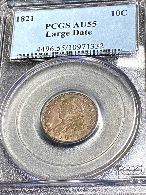 Graded Almost Uncirclated 55 by PCGS this Capped Bust left facing dime is a true collectible coin.