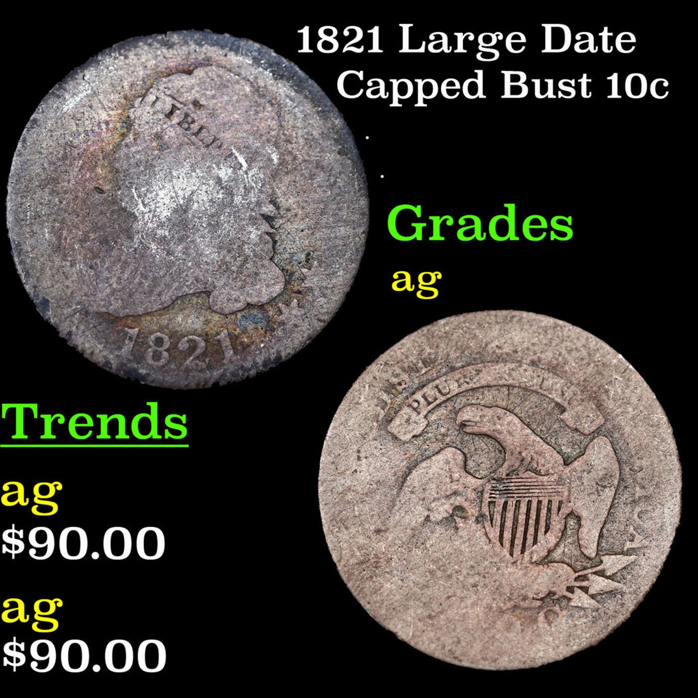 1821 Large Date Capped Bust Dime 10c Grades ag.