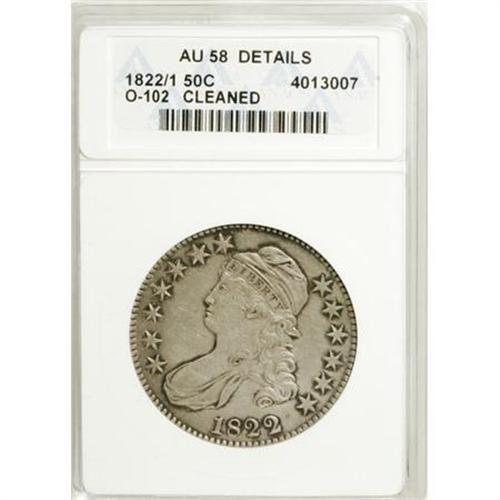 <B>1822/1 50C --Cleaned--ANACS. AU58 Details.</B></I> O-102. NGC Census: (11/24). PCGS Population (12/16). Numismedia Wsl. Price for NGC/PCGS coin in AU58: $1,125. (#6130)<BR><BR><B>Coin Engraver:</B> John Reich<BR><BR><b>Shipping:</b> Coins & Currency (<a target="_blank" href="http://www.heritageauctions.com/common/shipping.php">view shipping information</a>)