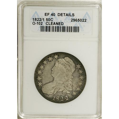 <B>1822/1 50C --Cleaned--ANACS. XF40 Details.</B></I> O-102. NGC Census: (2/66). PCGS Population (3/45). Numismedia Wsl. Price for NGC/PCGS coin in XF40: $240. (#6130)<BR><BR><b>Shipping:</b> Coins & Currency (<a target="_blank" href="http://www.heritageauctions.com/common/shipping.php">view shipping information</a>)