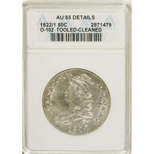 <B>1822/1 50C --Cleaned, Tooled--ANACS. AU55 Details.</B></I> O-102. NGC Census: (24/72). PCGS Population (8/27). Numismedia Wsl. Price for NGC/PCGS coin in AU55: $680. (#6130)<BR><BR><b>Shipping:</b> Coins & Currency (<a target="_blank" href="http://www.heritageauctions.com/common/shipping.php">view shipping information</a>)