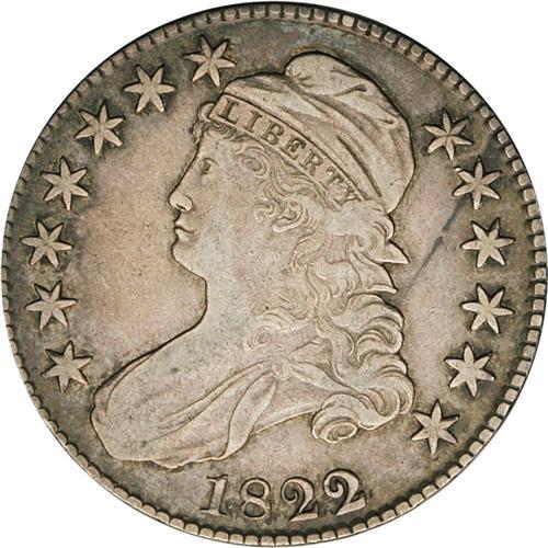 <B>1822/1<50C> VF35 NGC.</B></I> O-101, R.1. Medium-dark gray toning covers each side with nearly brilliant highlights where the signs of circulation are most apparent.