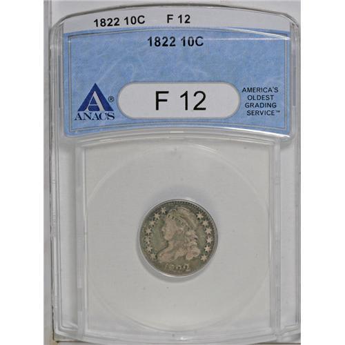 1822 10C Fine 12 ANACS. JR-1, R.4. Very scarce in any