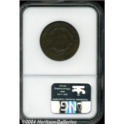 <table><tr><td><table><tr><td>1822 1C AU55 NGC. N-8, R.4. The letters in CENT step down, and an oversized T in LIBERTY touches Liberty's hair. Faded golden-brown luster outlines the devices and legends, while mahogany patina embraces the fields. A reasonably struck scarcer variety Cent that has a pair of subdued, unobtrusive marks above CE in CENT. NGC has certified only one 1822 Cent (this coin) as N-8. <BR><BR><B>Important notice:</B> Heritage usually auctions material at the rate of 200-250 lots per hour. On some occasions eBay Live bid software or the Internet may not be able to keep up with the pace of the auction. We recommend placing a realistic absentee bid now as insurance to avoid disappointment. Occasionally the auctioneer may eliminate or reject an eBay Live bid, and the auctioneer may also reopen a lot after the close of the eBay live bidding (usually because we missed an audience bid), and may reject your bid even if it shows you as the winning bidder. By bidding via eBay Live, you agree that Heritage may award the lot to another bidder at its sole discretion under the circumstances described above or any other reasonable circumstances. Since eBay bids are not shown to us until we open the lot on the floor, we treat those bids just like floor bids. In most cases the floor responds before the eBay bid is presented to us, due to Internet lag time, so for consistency we have made it a policy that floor bids are always considered first over tie eBay live bids. Also please note that all Heritage lots purchased through eBay Live carry a 20% Buyer's Premium. Please make sure you read the Terms and Conditions before you bid. <BR><BR><B>IMPORTANT ANNOUNCEMENT ABOUT RESERVES:</B> Heritage now divulges all reserves on its web site 7 days before every auction. If you want to know whether the reserve on this lot has been met, and if not, what the reserve amount is, please visit this lot page on the HeritageCoin.com web site, or email: bid@HeritageGalleries.com </span></font></td></tr></table></td></tr></table>