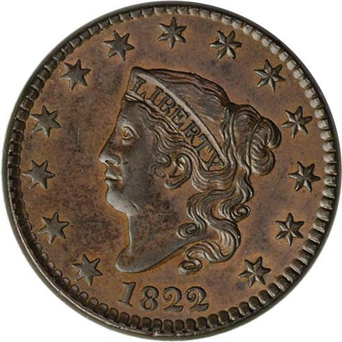 1822 1C AU58 NGC. N-1, R.1. The T in CENT is low and l 1822[1C] N-1, R.1. AU58 NGC. AU50 EAC.