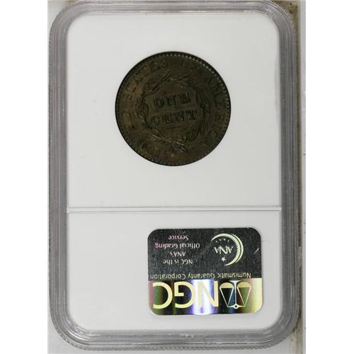 1822 1C MS61 Brown NGC. N-4, R.2. The inner circle is