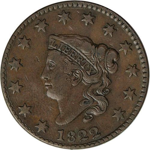 1822 1C XF45 NGC. N-4, R.2. An inner circle borders th 1822[1C] N-4, R.2. XF45 NGC. VF20 EAC.