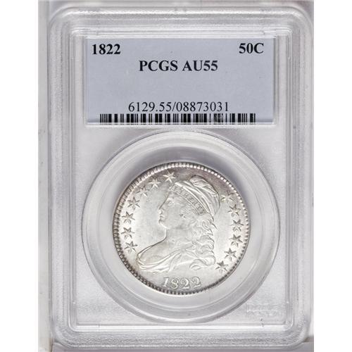 <B>1822<50C> AU55 PCGS.</B></I> O-105, R.3. The diagnostic die dots appear above the eagle's neck. A nicely struck and mostly untoned piece with minor highpoint wear and traces of blue-violet at the periphery.