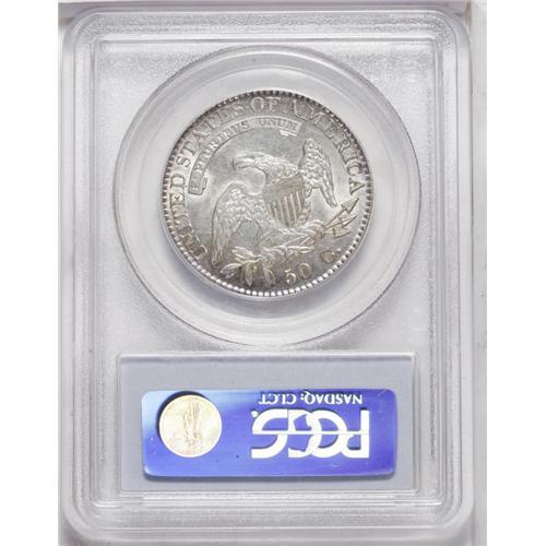 1822 50C AU55 PCGS. O-105, R.3. The diagnostic die dot