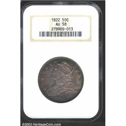 1822 50C AU58 NGC. O-114, R.3. Rich lilac-violet and golden-brown patina. A nicely struck example th