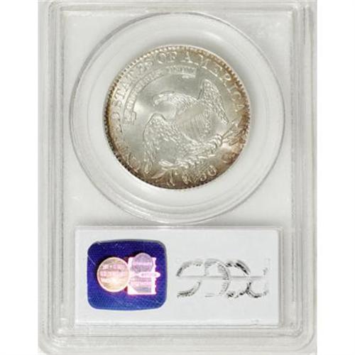 <B>1822 50C MS62 PCGS.</B></I> O-110, R.2. Superb luster, lovely red-brown toning near the reverse borders, and well struck in all areas. When closely examined, one notices a few tiny marks in the upper reverse fields, but for the grade this coin has a lot of appeal.<BR><BR><B>Coin Engraver:</B> John Reich<BR><BR><b>Shipping:</b> Coins & Currency (<a target="_blank" href="http://www.heritageauctions.com/common/shipping.php">view shipping information</a>)