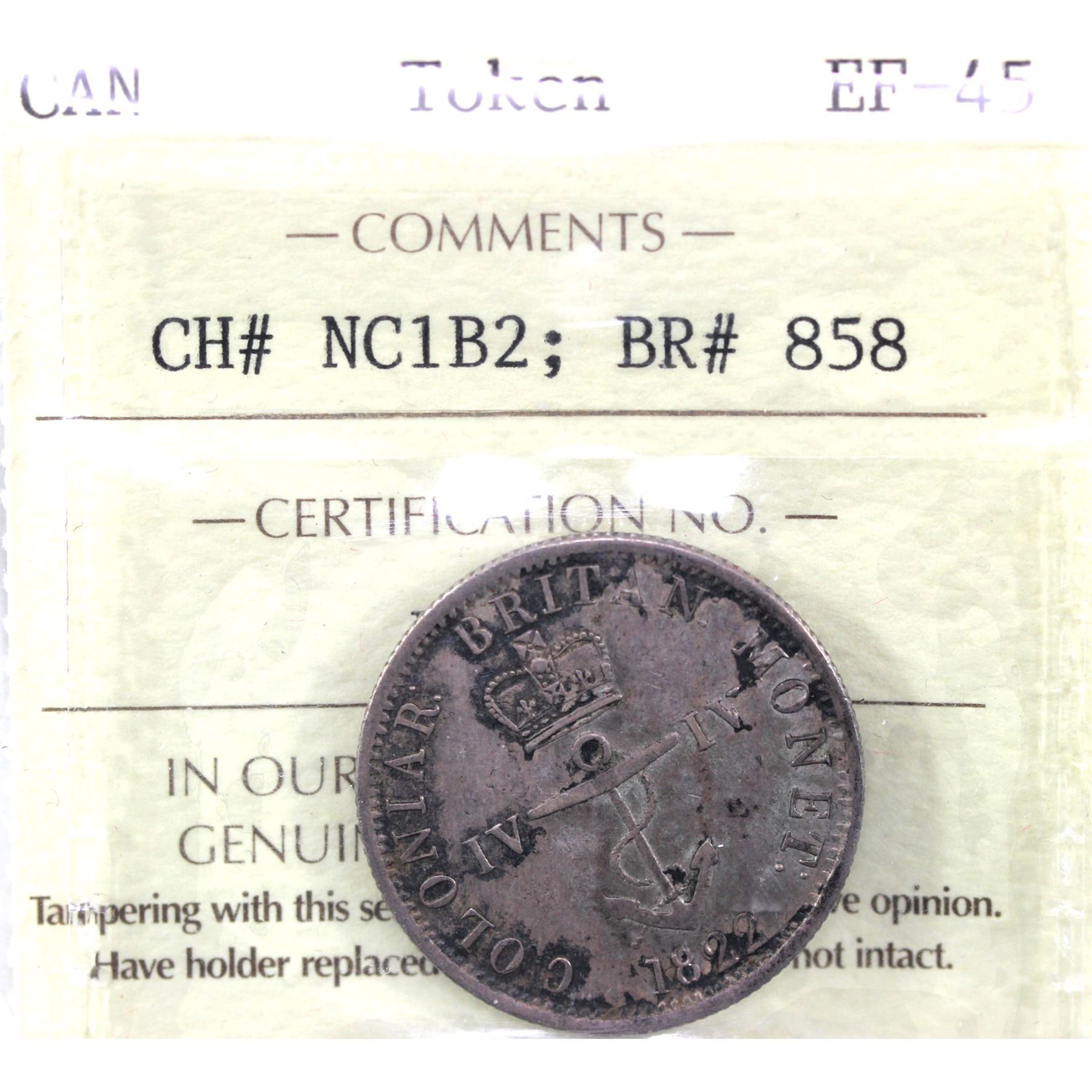1822 British Colonies Anchor Money $1/4 Token CH# NC1B2 Breton #858 ICCS Certified EF-45.