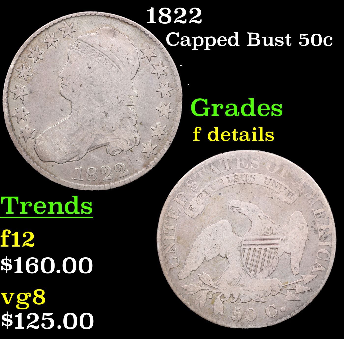 1822 Capped Bust Half Dollar 50c Grades f details.