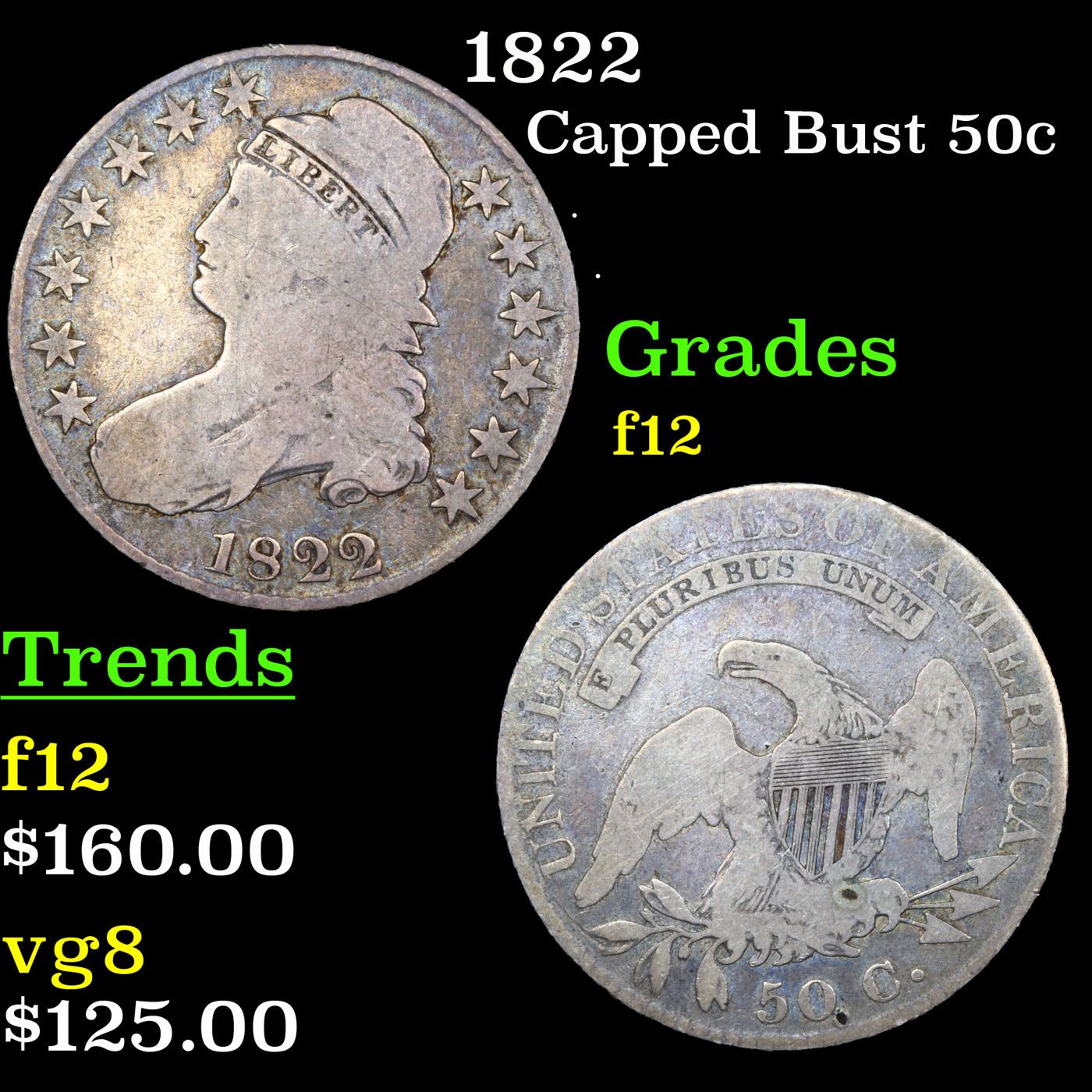 1822 Capped Bust Half Dollar 50c Grades f, fine