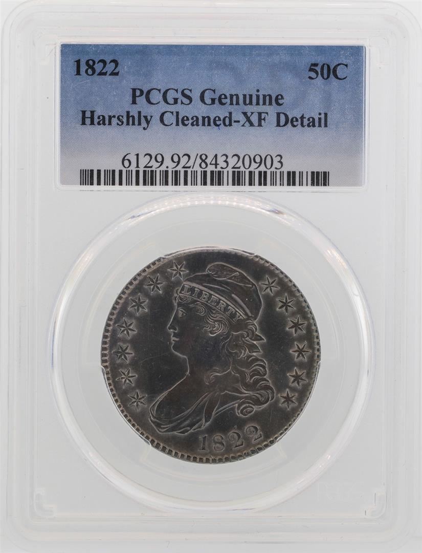 One 1822 Capped Bust Half Dollar Coin PCGS XF Detail. PCGS Certified.
