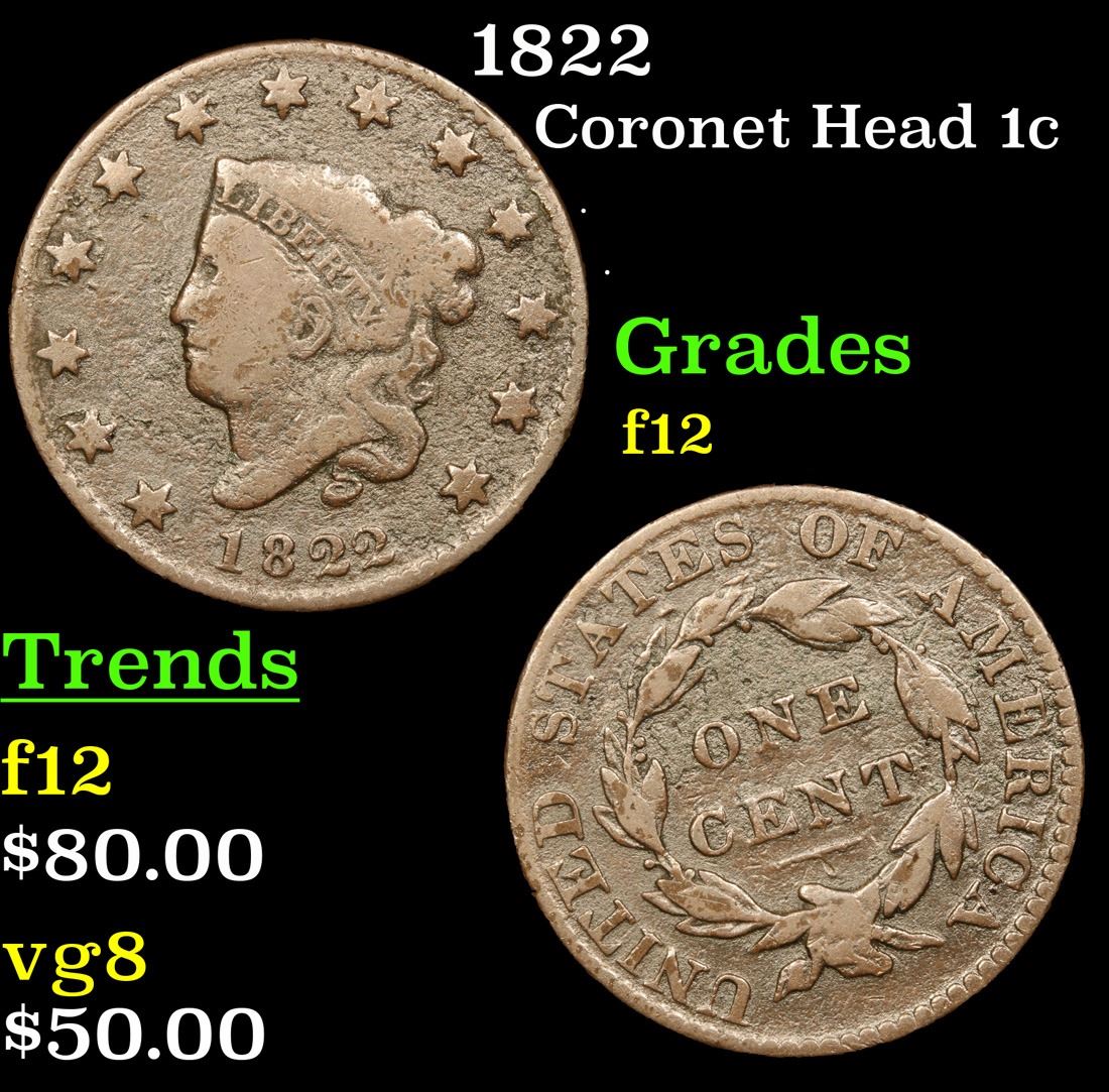 1822 . . Coronet Head Large Cent 1c Grades f, fine.