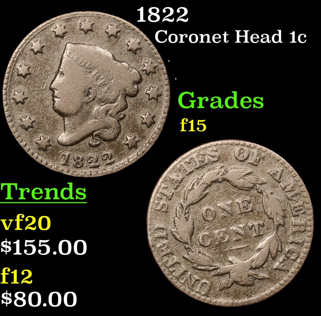 1822 . . Coronet Head Large Cent 1c Grades f+.