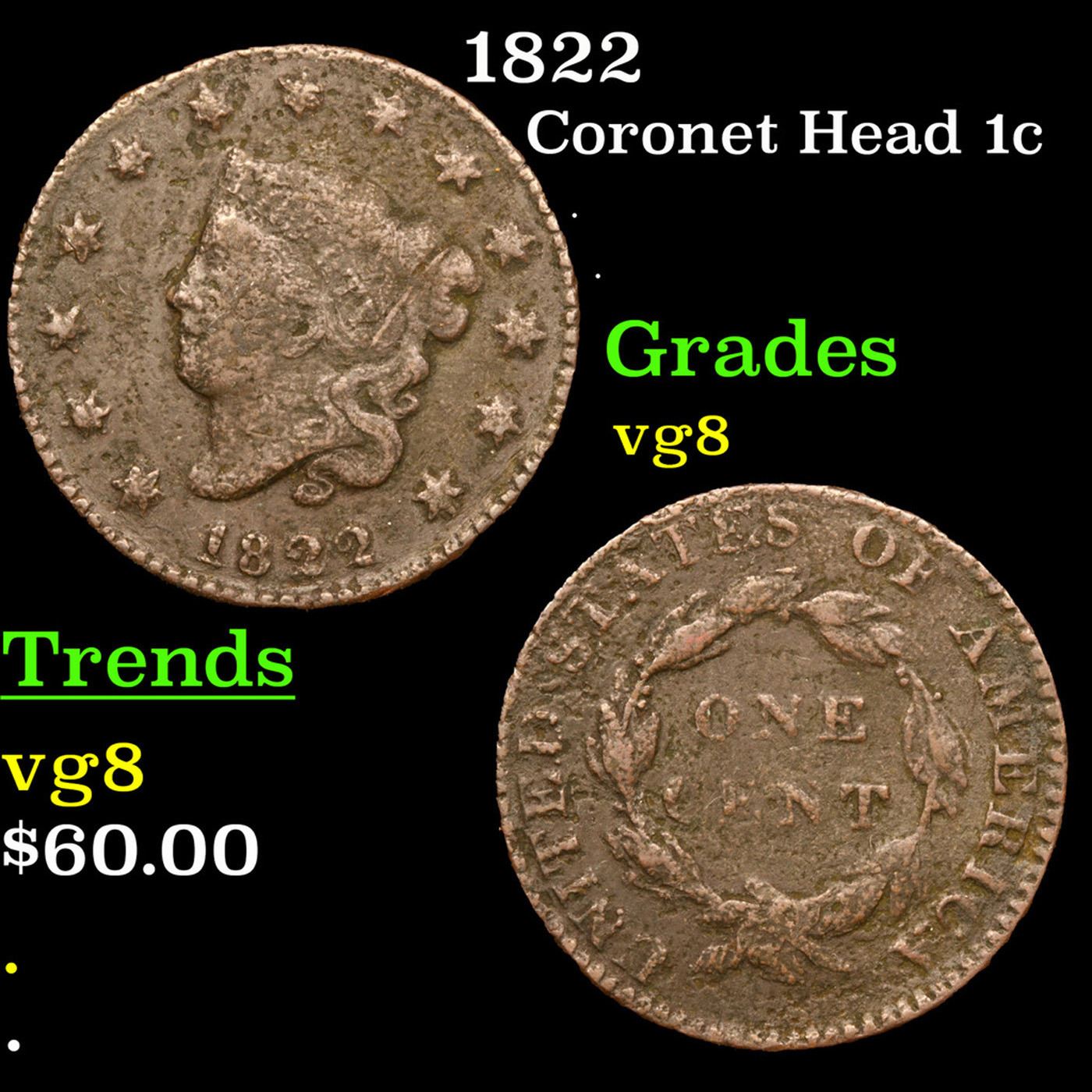 1822 Coronet Head Large Cent 1c Grades vg, very good.