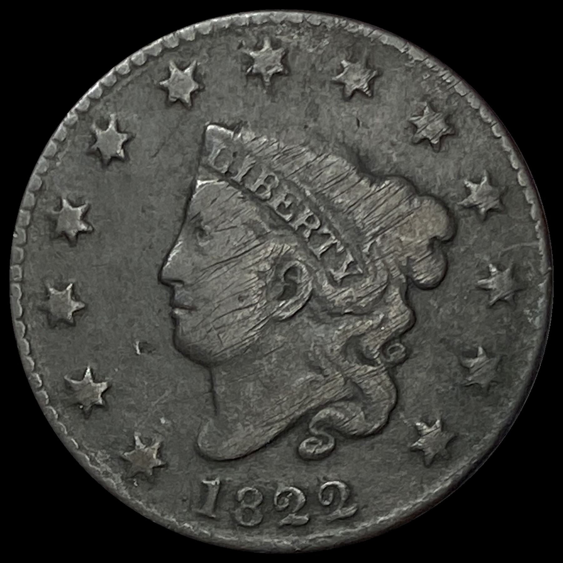 1822 Coronet Head Large Cent NICELY CIRCULATED