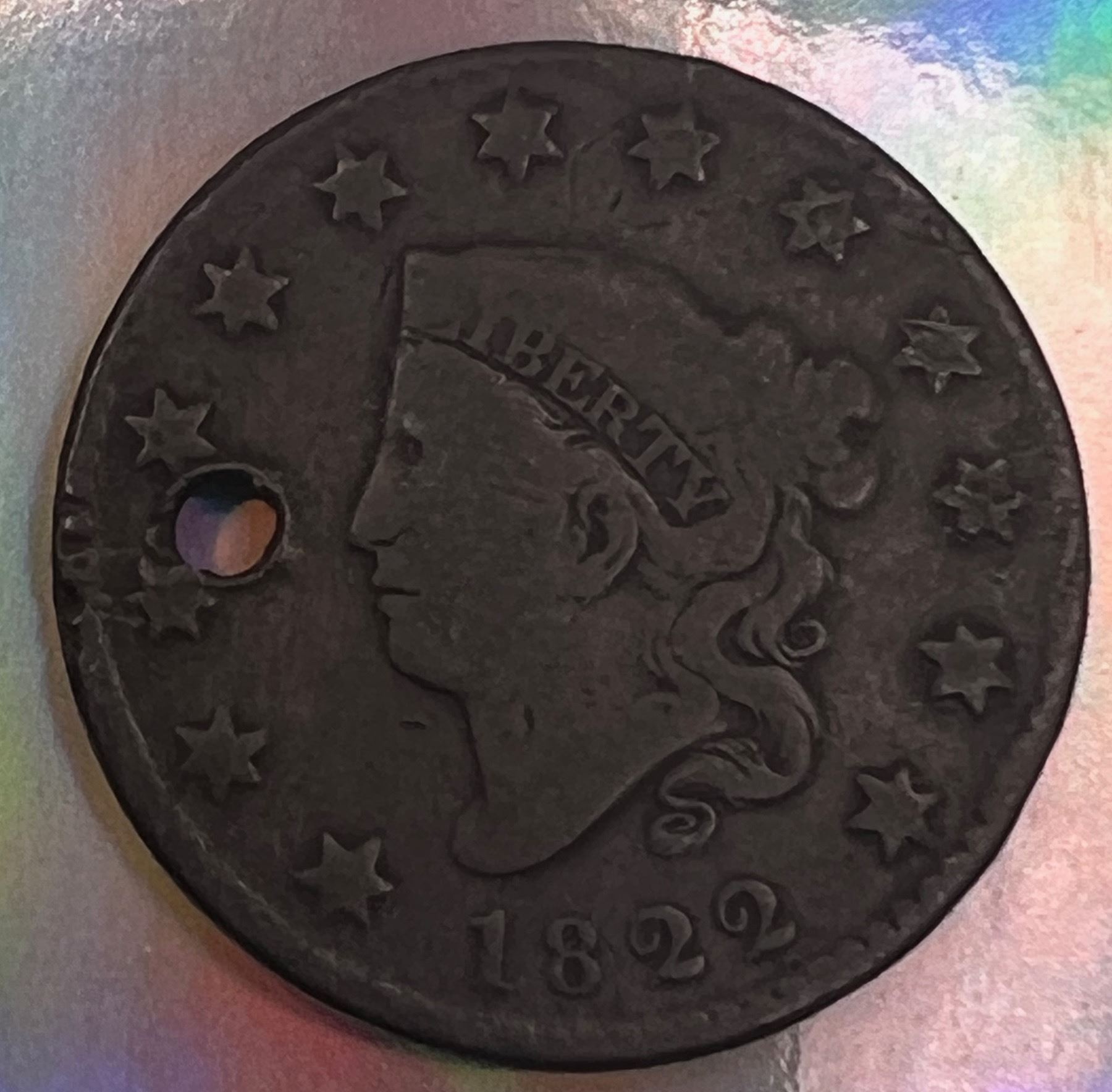 1822 USA Matron Head One Cent Holed only