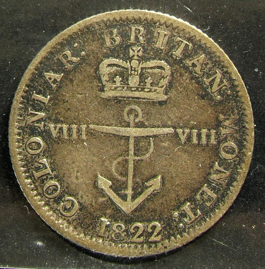 1822, graded CCCS F-15, British West Indies, 1/16$. Breton #859.
