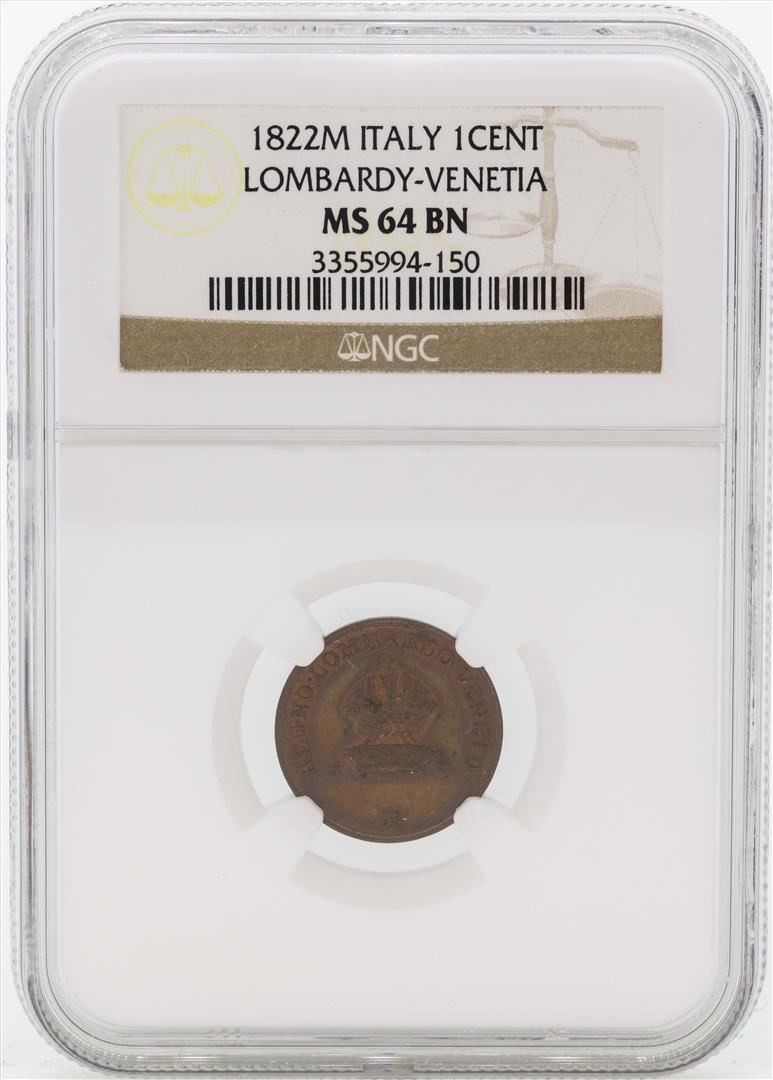 One 1822M Italy 1 Cent Lombardy-Venetia Coin NGC MS64 BN.