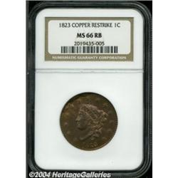 <table><tbody><tr><td><table> <TR><TD width="100%"><TABLE cellSpacing=1 cellPadding=3 width="100%" border=0><TBODY><TR><TD width="100%" bgColor=#79735c><FONT face=arial color=#ffffff size=3><B>Description</B> </FONT></TD></TR><TR><TD width="100%" bgColor=#ffffff><FONT face=arial size=2><B>1823 1C Copper Restrike MS66 Red and Brown NGC.</B></I> These restrikes were made at various times throughout the 19th century. Struck from dies recovered by the young Joseph Mickley, the cracked 1823 obverse die is married with an old 1813 reverse. This is an especially attractive restrike that retains much of the original mint red color around the devices and somewhat mellowed brown patina over the highpoints of the devices and in the fields. </FONT></TD></TR></TBODY></TABLE></TD></TR></TBODY></TABLE><BR><A name=PricesRealized></A><TABLE cellSpacing=0 cellPadding=0 width="100%" bgColor=#000000 border=0><TBODY><TR><TD width="100%"><TABLE cellSpacing=1 cellPadding=3 width="100%" border=0><TBODY><TR><TD width="100%" bgColor=#79735c><A name=PR><FONT face=arial color=#ffffff size=3><B>Previous Prices from Heritage Auctions</B> </FONT></A></TD></TR><TR><TD bgColor=#f6f6ed>No Prior Data Recorded </TD></TR><TR><TD bgColor=#ffffff><FONT face=arial size=1 ?>PLEASE NOTE: All prices realized reflect the final hammer price PLUS the buyer's premium in auctions that charge a buyer's premium. Each item has a notation at the top of the listing indicating whether that lot included a buyer's premium. Example: A item that sells with a final hammer price of $100 and a 20% buyer's premium will display with a price realized of $120. All information listed is intended to be as accurate as possible, but errors are possible. Please use this guide carefully and inform us of any inaccuracies. </FONT></TD></TR></TBODY></TABLE></TD></TR></TBODY></TABLE><BR><TABLE cellSpacing=0 cellPadding=0 width="100%" bgColor=#000000 border=0><TBODY><TR><TD width="100%"><TABLE cellSpacing=1 cellPadding=3 width="100%" border=0><TBODY><TR><TD width="100%" bgColor=#79735c colSpan=6><FONT face=arial color=#ffffff size=3><B>Price Guide*</B> </FONT></TD></TR><TR bgColor=#f6f6ed><TD align=middle><B>Grade</B> </TD><TD align=middle><B>Coin World<BR>(Trends)</B> </TD><TD align=middle><B>Numismedia<BR>Retail</B> </TD><TD align=middle><B>Numismedia<BR>Wholesale</B> </TD><TD align=middle><B>Coin<BR>Universe</B> </TD><TD align=middle><B>Heritage<BR>Value Index</B> </TD></TR><TR bgColor=#ffffff><TD align=middle>65</TD><TD align=right>---</TD><TD align=right>---</TD><TD align=right>---</TD><TD align=right>---</TD><TD align=right>$1,185.75</TD></TR><TR style="FONT-WEIGHT: bold" bgColor=#cccfdd><TD align=middle>66</TD><TD align=right>---</TD><TD align=right>---</TD><TD align=right>---</TD><TD align=right>---</TD><TD align=right>---</TD></TR><TR bgColor=#ffffff><TD align=middle>67</TD><TD align=right>---</TD><TD align=right>---</TD><TD align=right>---</TD><TD align=right>---</TD><TD align=right>---</TD></TR><TR bgColor=#ffffff><TD colSpan=6><FONT size=1>*All information listed is intended to be as accurate as possible, but errors are possible. No item may be returned or refused based on this information which is provided as a service to our customers. You should contact each pricing source directly to determine the accuracy of this information. </FONT></TD></TR></TBODY></TABLE></TD></TR></TBODY></TABLE><BR><TABLE cellSpacing=0 cellPadding=0 width="100%" bgColor=#000000 border=0><TBODY><TR><TD width="100%"><TABLE cellSpacing=1 cellPadding=3 width="100%" border=0><TBODY><TR><TD width="100%" bgColor=#79735c><FONT face=arial color=#ffffff size=3><B>Population Guide</B> </FONT></TD></TR><TR bgColor=#ffffff><TD align=middle><!-- Begin Output of Population Grid--><TABLE cellSpacing=0 cellPadding=0 width="100%" border=0><TBODY><TR><TD vAlign=center><TABLE cellSpacing=0 width="100%" border=1 cellsadding="3"><TBODY><TR><TD vAlign=center><TABLE cellSpacing=0 cellPadding=3 width="100%" border=1><TBODY><TR><TD vAlign=center align=middle bgColor=#f0f1e8 colSpan=2 <CENTER><FONT face=Arial size=2><B>PCGS Pop </B></FONT><CENTER></CENTER></TD><TD vAlign=center align=middle bgColor=#f0f1e8 colSpan=2><CENTER><FONT face=Arial size=2><B>NGC Pop</B></CENTER></FONT></TD></TR><TR><TD vAlign=center><FONT face=Arial size=2>(66)</FONT> </TD><TD vAlign=center align=right><FONT face=Arial size=2>0</FONT> </TD><TD vAlign=center><FONT face=Arial size=2>(66)</FONT> </TD><TD vAlign=center align=right><FONT face=Arial size=2>1</FONT> </TD></TR><TR><TD vAlign=center><FONT face=Arial size=2>(>66)</FONT> </TD><TD vAlign=center align=right><FONT face=Arial size=2>0</FONT> </TD><TD vAlign=center><FONT face=Arial size=2>(>66)</FONT> </TD><TD vAlign=center align=right><FONT face=Arial size=2>0</FONT> </TD></TR></TBODY></TABLE></TD></TR></TBODY></TABLE></TD></TR></TBODY></TABLE><!-- End Output of Population Grid--></TD></TR></TBODY></TABLE></TD></TR></TBODY></TABLE><BR><TABLE cellSpacing=0 cellPadding=0 width="100%" bgColor=#000000 border=0><TBODY><TR> <font color='#000000'><span style='background-color: #FFFFFF'><td bgcolor='#FFFFFE'> Important notice: Heritage usually auctions material at the rate of 200-250 lots per hour. On some occasions eBay Live bid software or the Internet may not be able to keep up with the pace of the auction. We recommend placing a realistic absentee bid now as insurance to avoid disappointment. Occasionally the auctioneer may eliminate or reject an eBay Live bid, and the auctioneer may also reopen a lot after the close of the eBay live bidding (usually because we missed an audience bid), and may reject your bid even if it shows you as the winning bidder. By bidding via eBay Live, you agree that Heritage may award the lot to another bidder at its sole discretion under the circumstances described above or any other reasonable circumstances. Since eBay bids are not shown to us until we open the lot on the floor, we treat those bids just like floor bids. In most cases the floor res