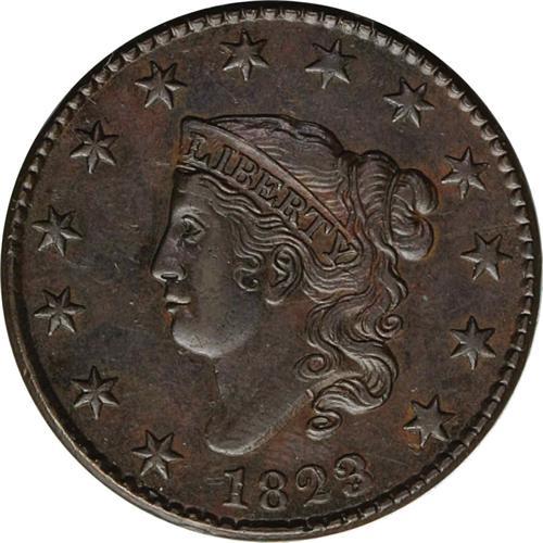 1823/2 1C N-1, R.2. AU58 NGC. XF40 EAC. A late die sta 1823/2[1C] N-1, R.2. AU58 NGC. XF40 EAC.