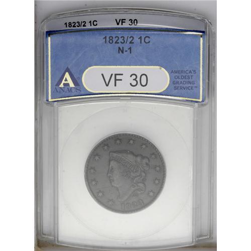 1823/2 1C VF30 ANACS. N-1, Low R.2. Only three varieti