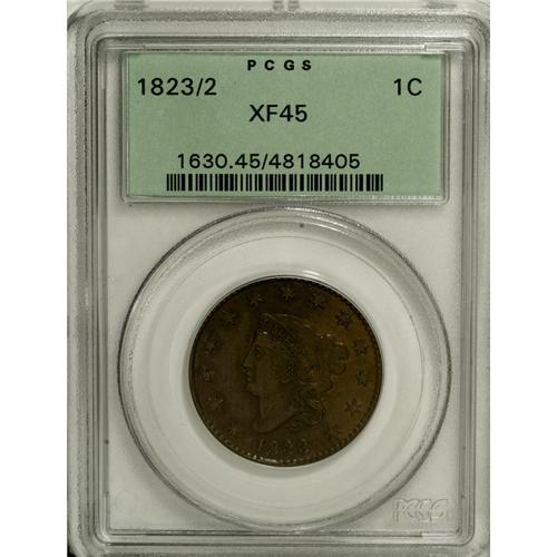 1823/2 1C XF45 PCGS. N-1, Low R.2. Both sides have mos