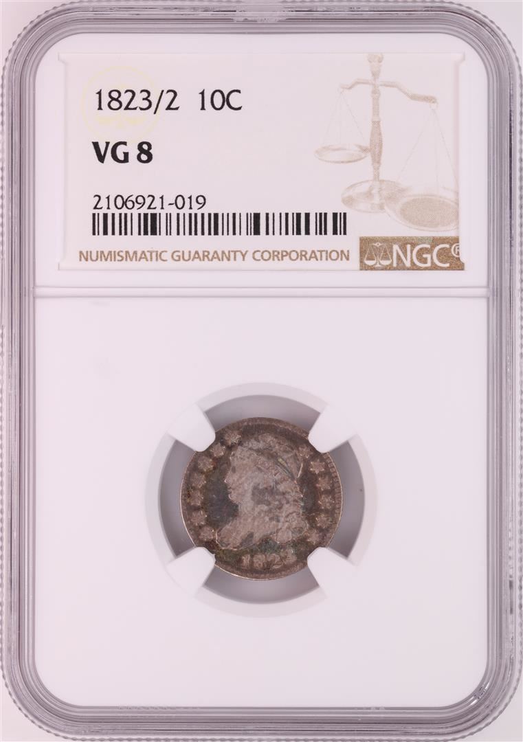 One 1823/2 Capped Bust Dime Coin NGC VG8. NGC Certified.