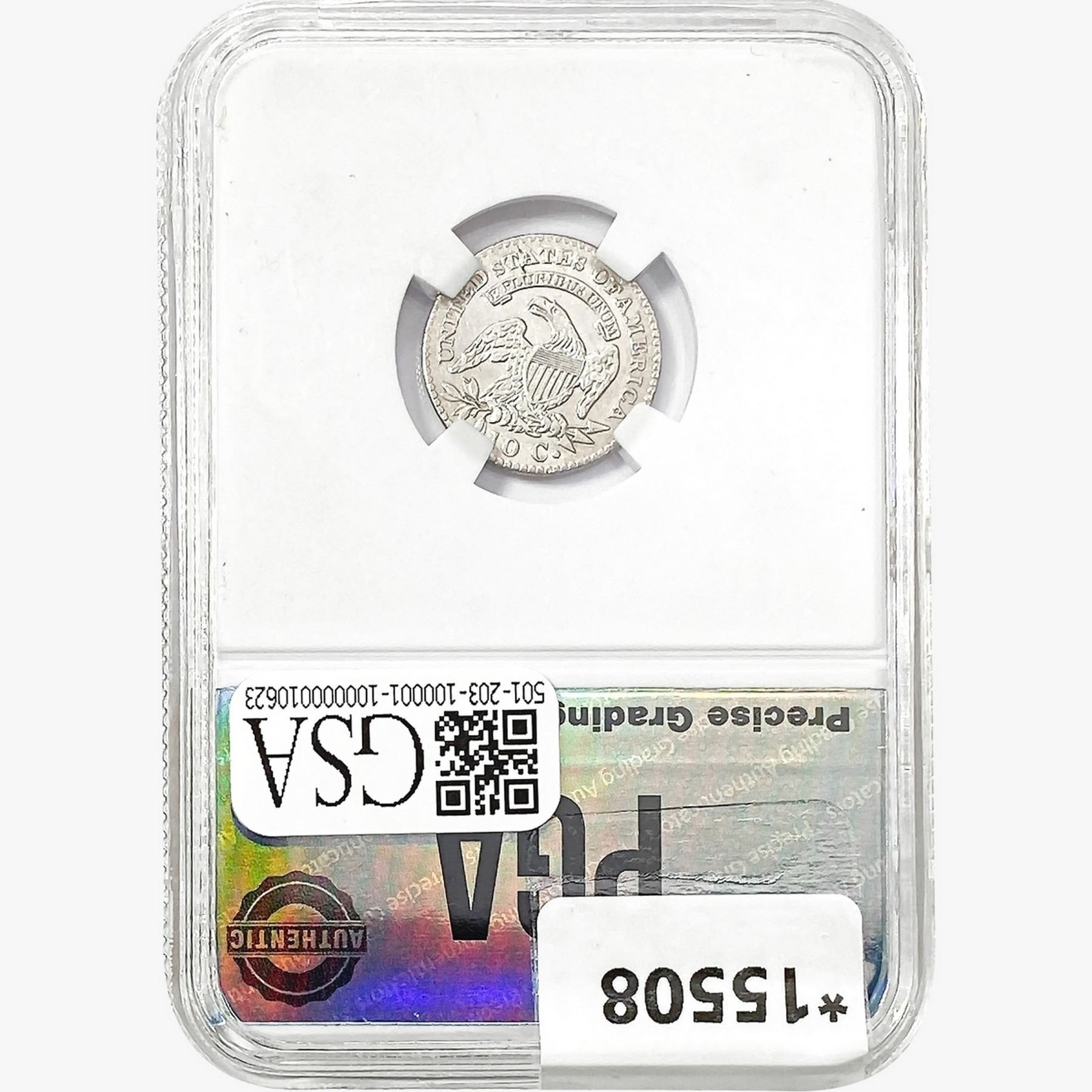 COINS AND CURRENCY LISTED IN GSA’S CATALOG AS GRADED AND ENCAPSULATED BY PCGS, NGC, ANACS, ICG, PCGS CURRENCY, PMG, PCGS BANKNOTE GRADING, CMC OR ANY OTHER THIRD-PARTY GRADING SERVICE ARE LIKEWISE SOLD “AS-IS” EXCEPT AS EXPRESSLY SET FORTH HEREIN. ALL THIRD-PARTY GRADING SERVICE GUARANTEES, INCLUDING AUTHENTICITY, ARE THE SOLE RESPONSIBILITY OF THE THIRD-PARTY GRADING SERVICE AND NOT WARRANTIES OR GUARANTEES OF GSA. BIDDERS SHOULD CONTACT THESE THIRD-PARTY GRADING SERVICES DIRECTLY WITH RESPECT TO ANY CLAIMS OR QUESTIONS THEY MAY HAVE CONCERNING THEIR GUARANTEES AND WARRANTIES. BIDDERS ACKNOWLEDGE AND AGREE THAT AUCTIONEER IS NOT BOUND BY OR LIABLE FOR ANY OPINION OR CERTIFICATION BY ANY THIRD-PARTY GRADING SERVICE. REMOVAL OF A PRODUCT FROM ITS PROTECTIVE CASING OR HOLDER OR ALTERATION OF ANY COIN HOLDER WAIVES ALL RIGHTS CONCERNING THE PRODUCT CONTAINED THEREIN.