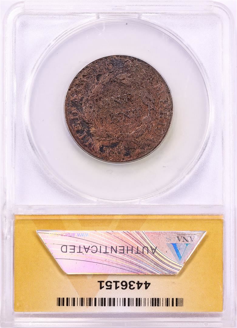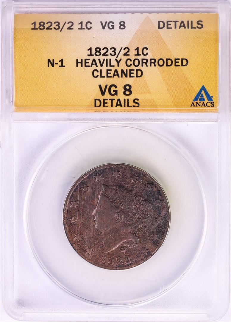 One 1823/2 N-1 Coronet Head Large Cent Coin ANACS VG8 Details. ANACS Certified.