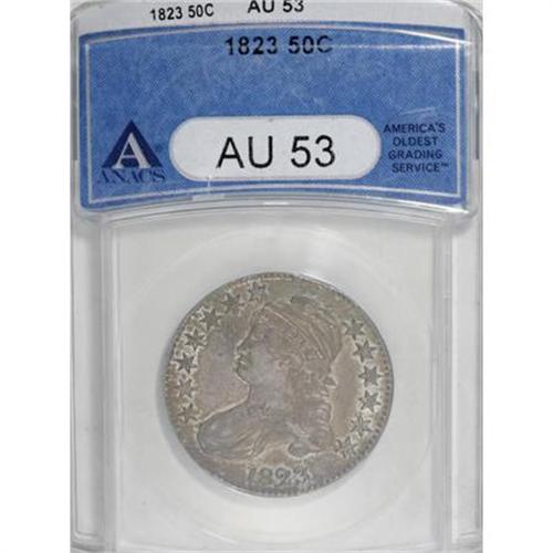 <B>1823 50C ( ) AU53 ANACS.</B></I> NGC Census: (32/393). PCGS Population (26/307). Mintage: 1,694,200. Numismedia Wsl. Price for NGC/PCGS coin in AU53: $475. (#6131)<BR><BR><B>Coin Engraver:</B> John Reich<BR><BR><b>Shipping:</b> Coins & Currency (<a target="_blank" href="http://www.heritageauctions.com/common/shipping.php">view shipping information</a>)
