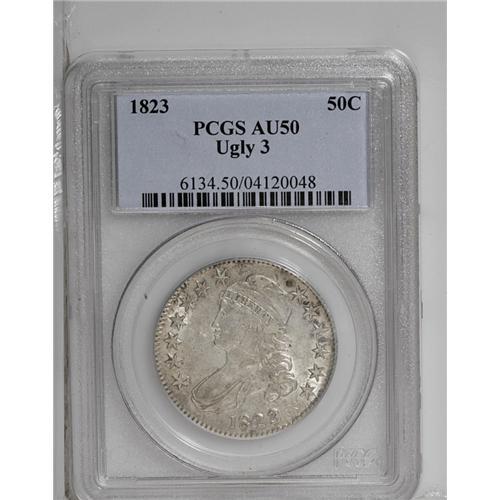 1823 50C Ugly 3 AU50 PCGS. O-110a, R.3. The endearingl
