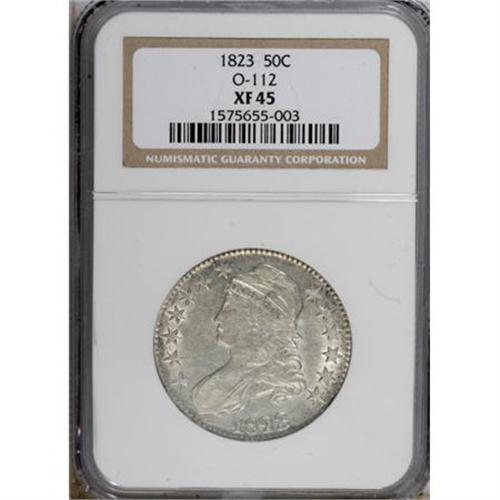 <B>1823 50C XF45 NGC.</B></I> O-112. NGC Census: (51/449). PCGS Population (46/382). Mintage: 1,694,200. Numismedia Wsl. Price for NGC/PCGS coin in XF45: $221. (#6131)<BR><BR><B>Coin Engraver:</B> John Reich<BR><BR><b>Shipping:</b> Coins & Currency (<a target="_blank" href="http://www.heritageauctions.com/common/shipping.php">view shipping information</a>)