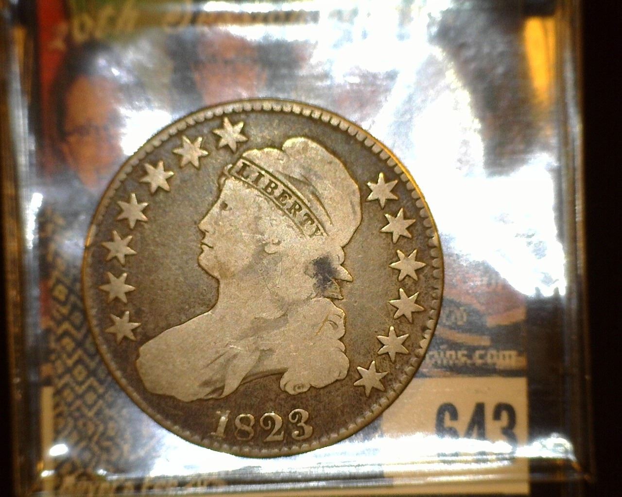 1823 Capped Bust Half Dollar, VG.