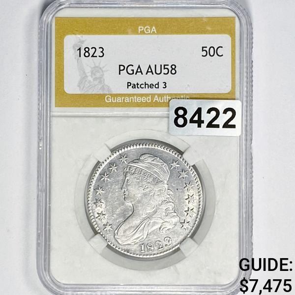 1823 Ptchd 3 Capped Bust Half Dollar PGA - AU58