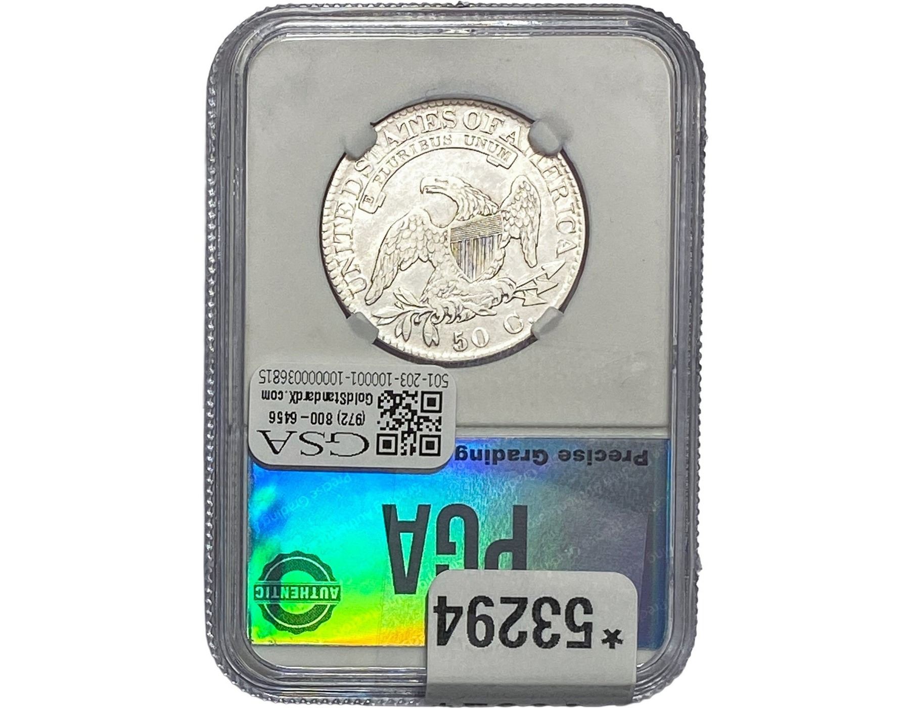 l. All non-certified coins and currency are guaranteed genuine, but are not guaranteed as to grade, since grading is a matter of opinion, an art and not a science, and therefore the description rendered by GSA or any third-party grading service may not agree with the opinion of others (including trained experts), and the same expert may not grade the same item with the same grade at two different times. GSA may, but is not obligated to, express an opinion as to non-certified numismatic items, in GSA’s opinion, or by its employees’ experience and the current interpretation of the American Numismatic Association’s standards as of the date the catalog was prepared. There is no guarantee or warranty expressed or implied that the grading opinions utilized by GSA, if any, will meet the standards of any grading service at any time in the future.