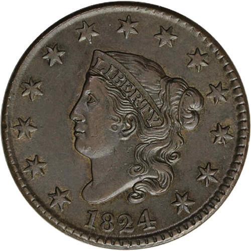 1824 1C AU58 NGC. N-2, Early Die State, R.1. The rever 1824[1C] N-2, R.1. AU58 NGC. XF40 EAC.