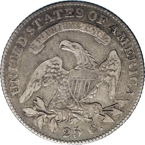 <B>1824/2<25C> B-1, R.3. VF25 NGC. Die State I.</B></I> Overdate; Spine left from lowest arrow point. Dark gray toning with the center a bit mottled with a mixture of gold and gray, the reverse is more even in color. Another scarce date like the 1822, which keeps demand strong for this issue.<BR><I>Ex: Eric Gutscher (6/1989).</B></I> Envelope Included.
