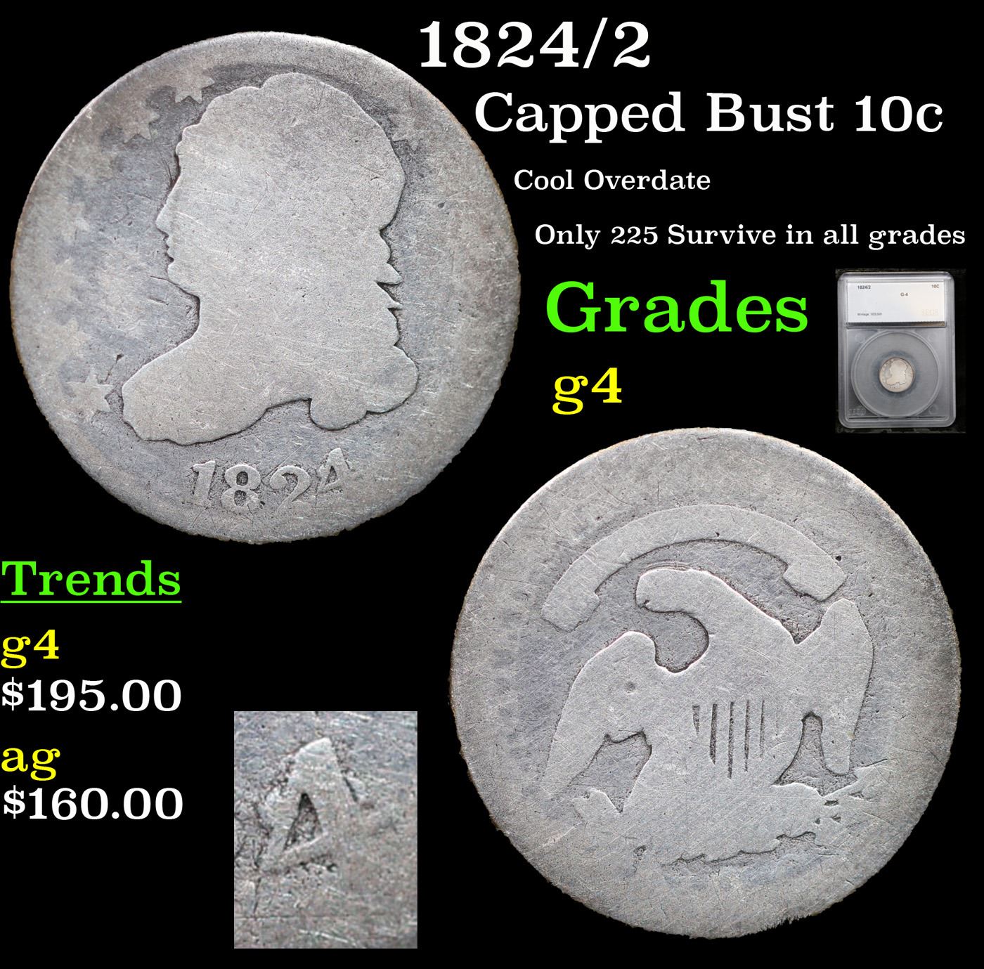 1824/2 Capped Bust Dime 10c Graded g4 By SEGS.