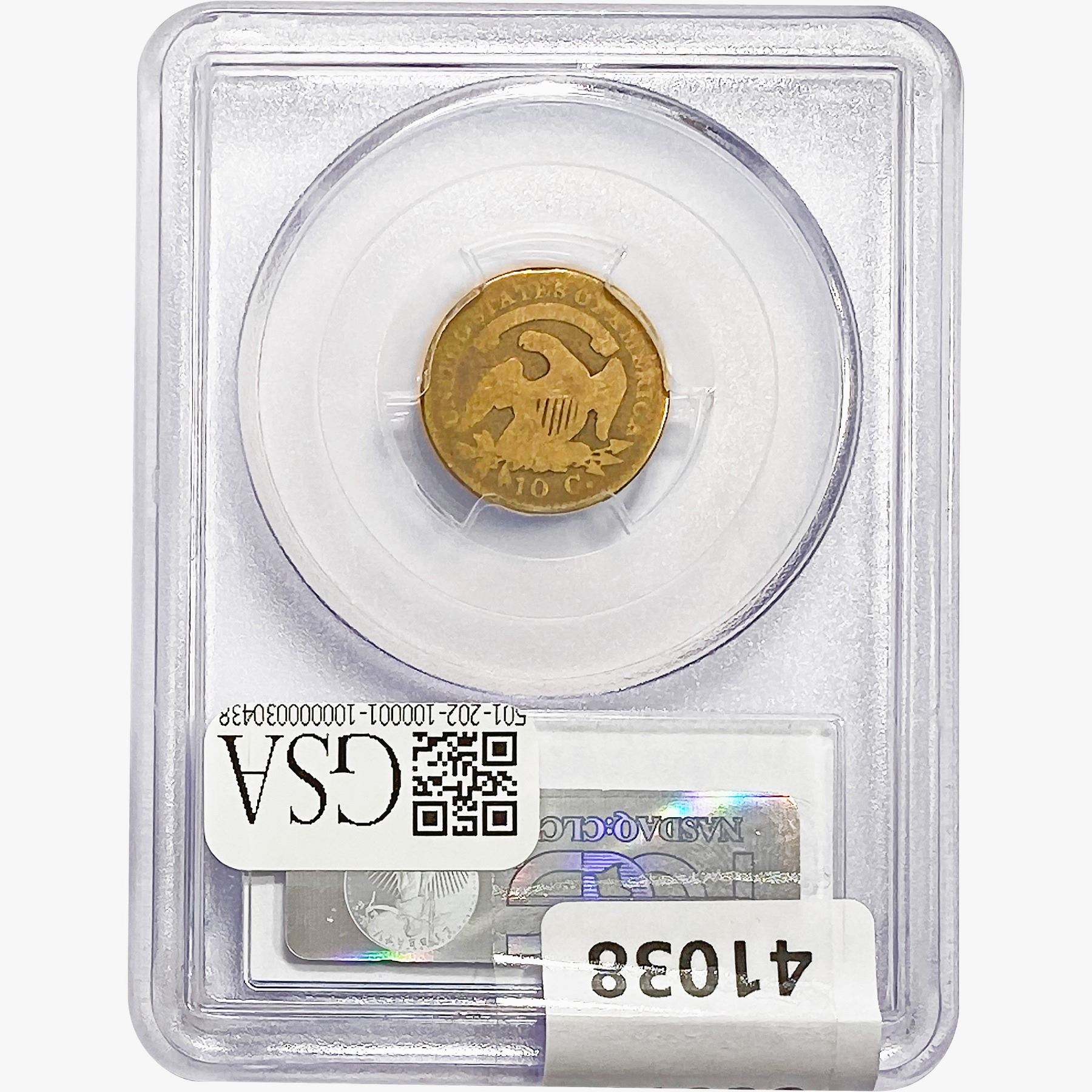 COINS AND CURRENCY LISTED IN GSA’S CATALOG AS GRADED AND ENCAPSULATED BY PCGS, NGC, ANACS, ICG, PCGS CURRENCY, PMG, PCGS BANKNOTE GRADING, CMC OR ANY OTHER THIRD-PARTY GRADING SERVICE ARE LIKEWISE SOLD “AS-IS” EXCEPT AS EXPRESSLY SET FORTH HEREIN. ALL THIRD-PARTY GRADING SERVICE GUARANTEES, INCLUDING AUTHENTICITY, ARE THE SOLE RESPONSIBILITY OF THE THIRD-PARTY GRADING SERVICE AND NOT WARRANTIES OR GUARANTEES OF GSA. BIDDERS SHOULD CONTACT THESE THIRD-PARTY GRADING SERVICES DIRECTLY WITH RESPECT TO ANY CLAIMS OR QUESTIONS THEY MAY HAVE CONCERNING THEIR GUARANTEES AND WARRANTIES. BIDDERS ACKNOWLEDGE AND AGREE THAT AUCTIONEER IS NOT BOUND BY OR LIABLE FOR ANY OPINION OR CERTIFICATION BY ANY THIRD-PARTY GRADING SERVICE. REMOVAL OF A PRODUCT FROM ITS PROTECTIVE CASING OR HOLDER OR ALTERATION OF ANY COIN HOLDER WAIVES ALL RIGHTS CONCERNING THE PRODUCT CONTAINED THEREIN.