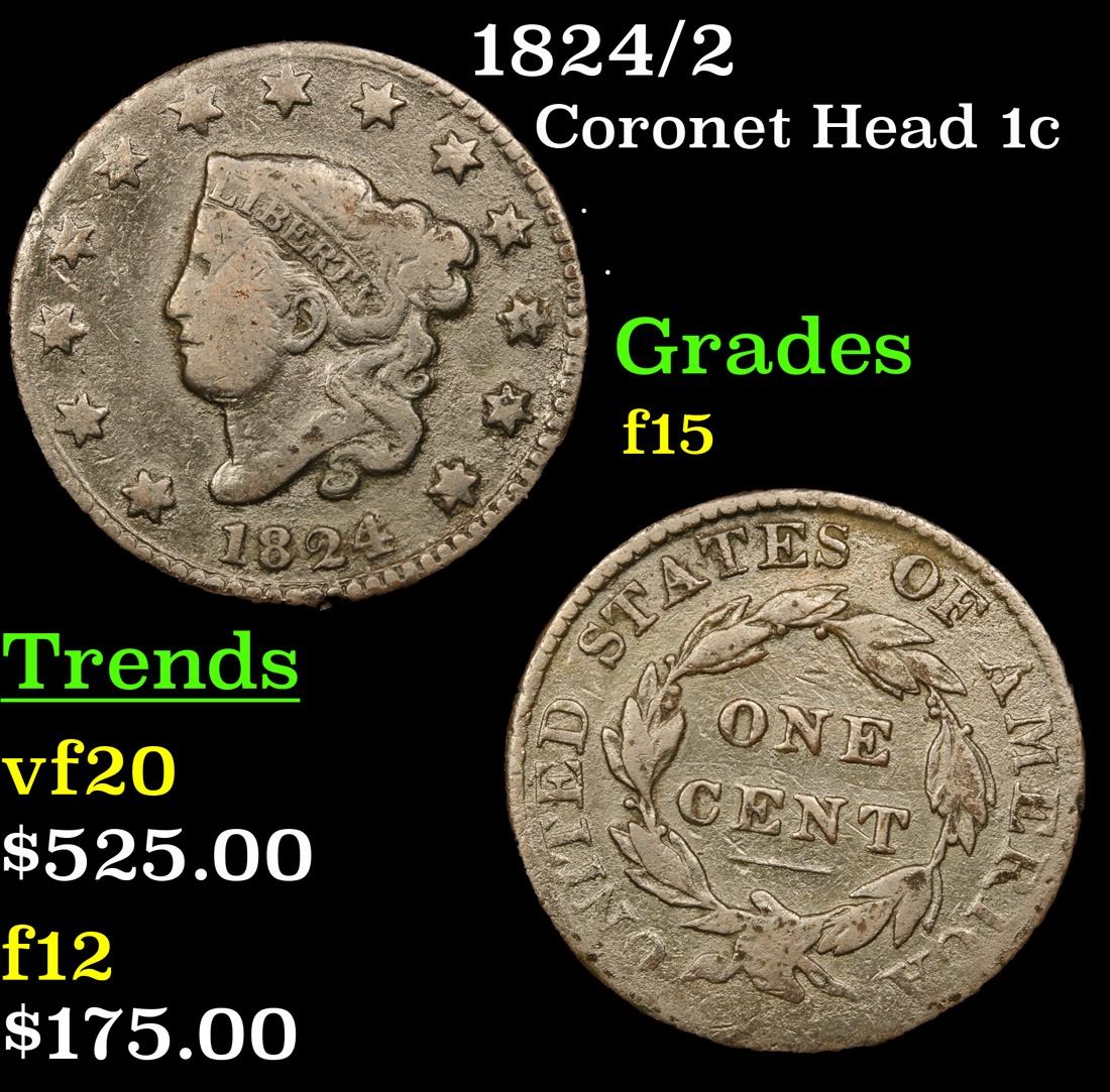1824/2 . . Coronet Head Large Cent 1c Grades f+.