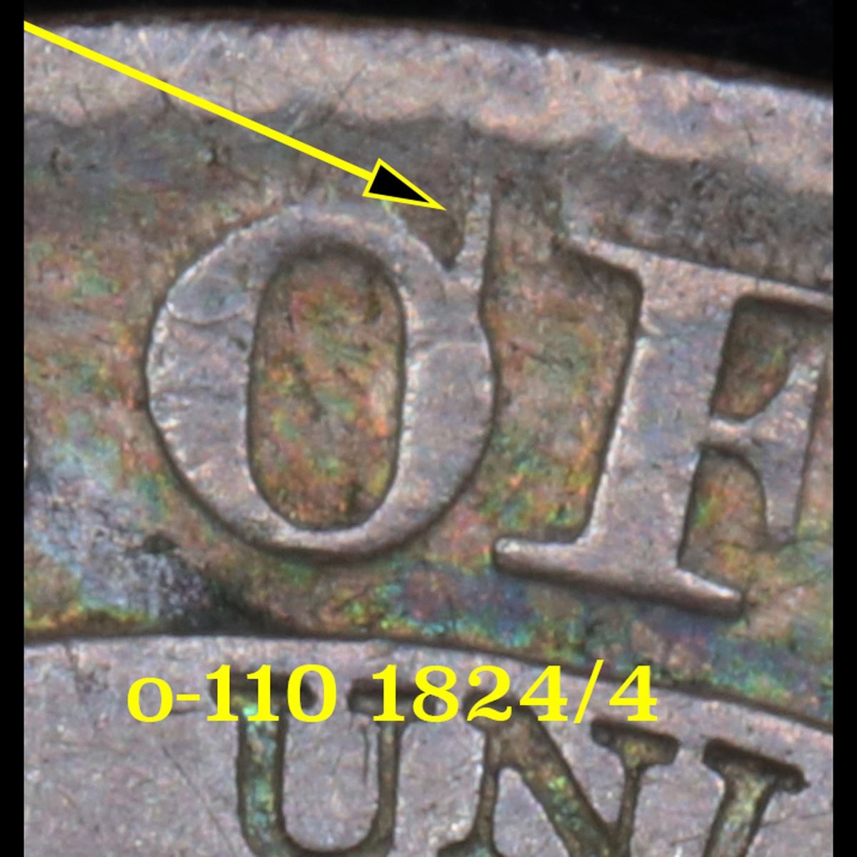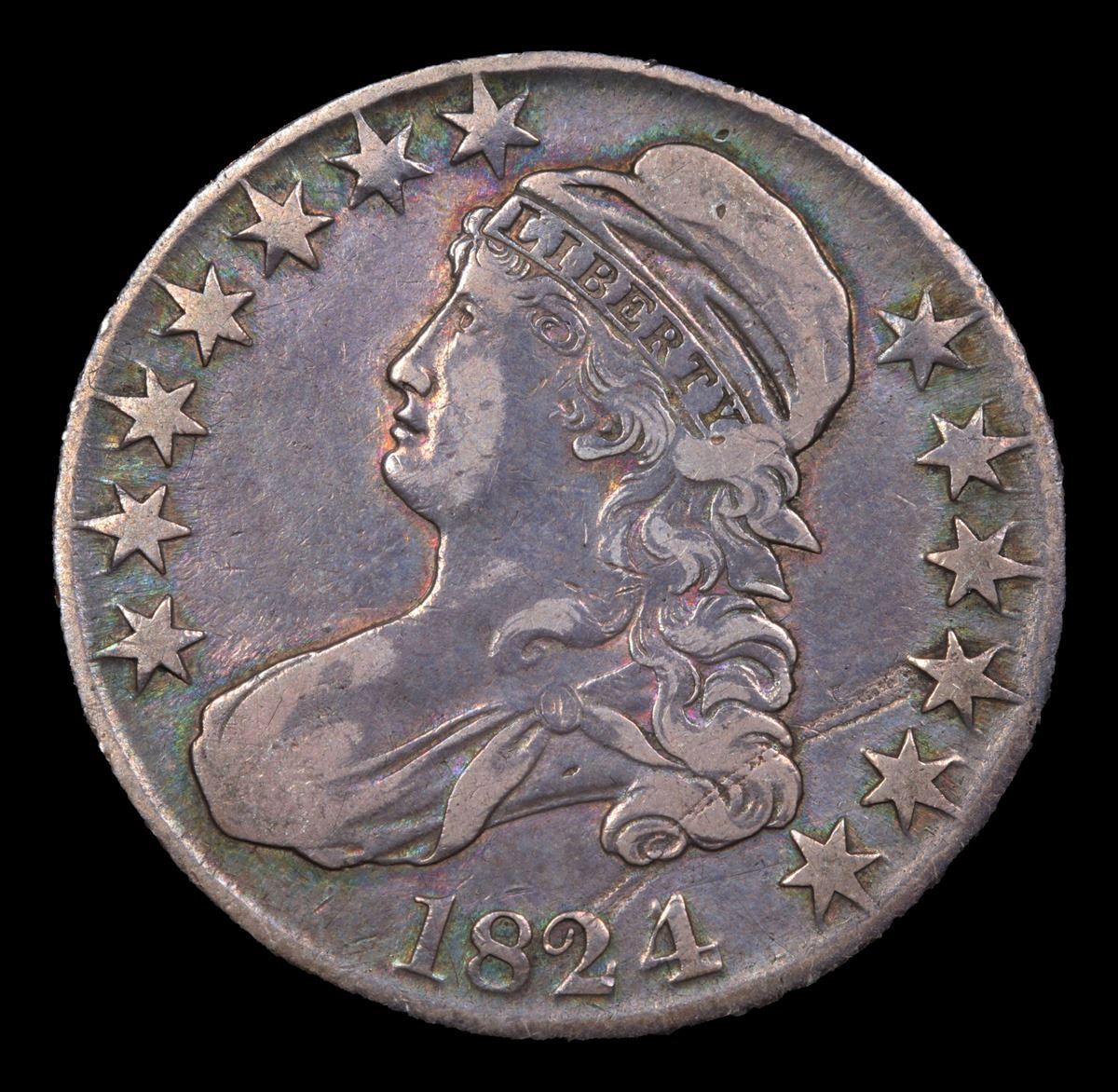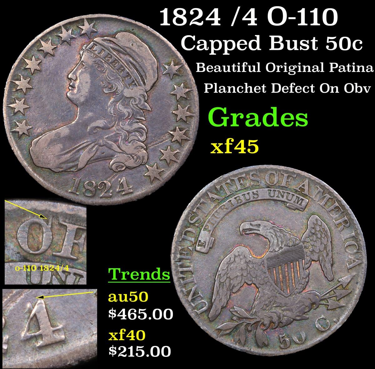 1824 /4 O-110 Capped Bust Half Dollar 50c Grades xf+.