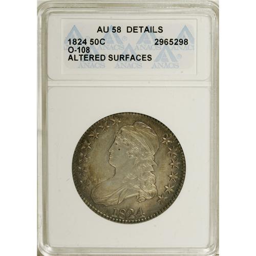<B>1824 50C --Altered Surfaces--ANACS. AU58 Details.</B></I> O-108. NGC Census: (151/190). PCGS Population (89/146). Mintage: 3,504,954. Numismedia Wsl. Price for NGC/PCGS coin in AU58: $575. (#6137)<BR><BR><b>Shipping:</b> Coins & Currency (<a target="_blank" href="http://www.heritageauctions.com/common/shipping.php">view shipping information</a>)