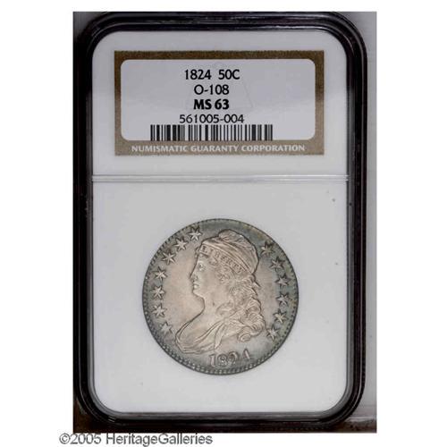 1824 50C MS63 NGC. O-108, R.2. Exceptional is appearan 1824[50C] MS63 NGC.
