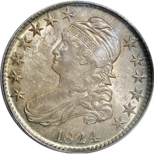 1824 50C MS64 PCGS. O-115, R.2. A tiny mint-made dot i