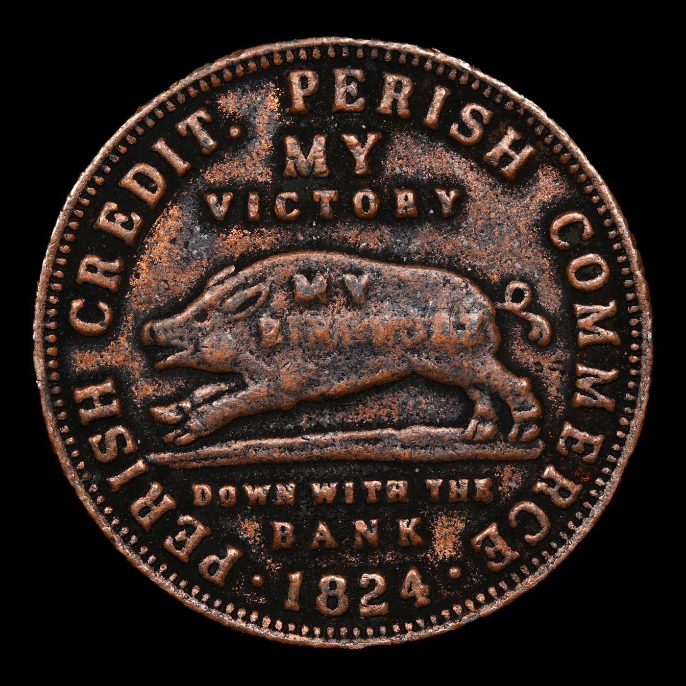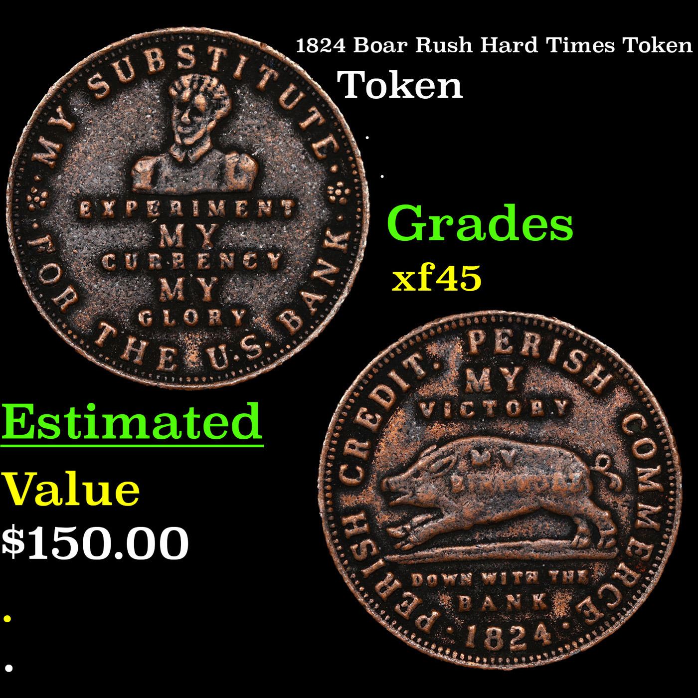 1824 Boar Rush Hard Times Token Hard Times Token 1c Grades xf+.