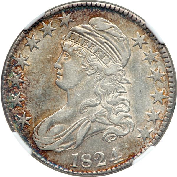 1824. NGC graded AU-50. Light golden toning about the obverse borders on this attractive, problem-free coin.